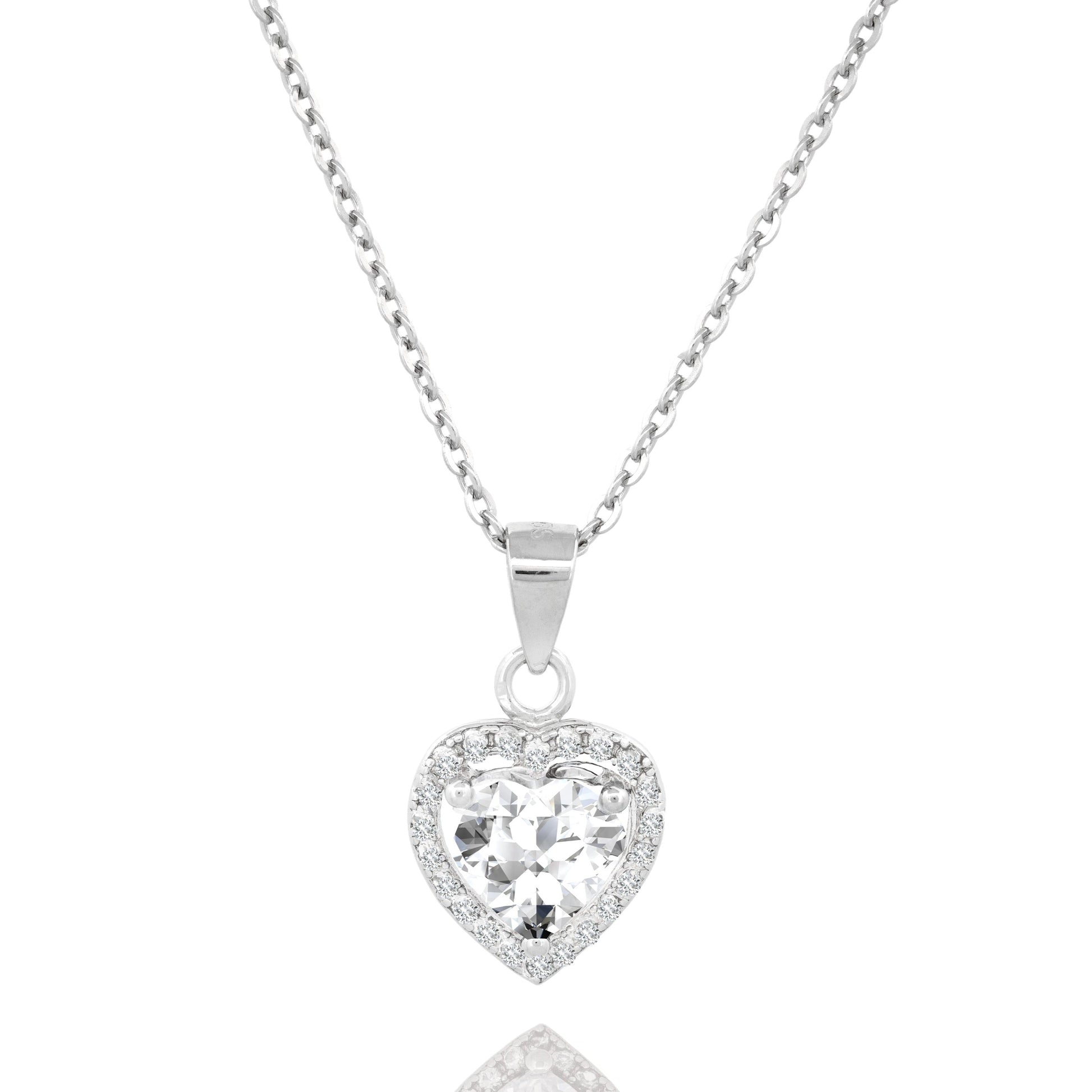 Silver Sparkle Cubic Zirconia Heart Neacklace