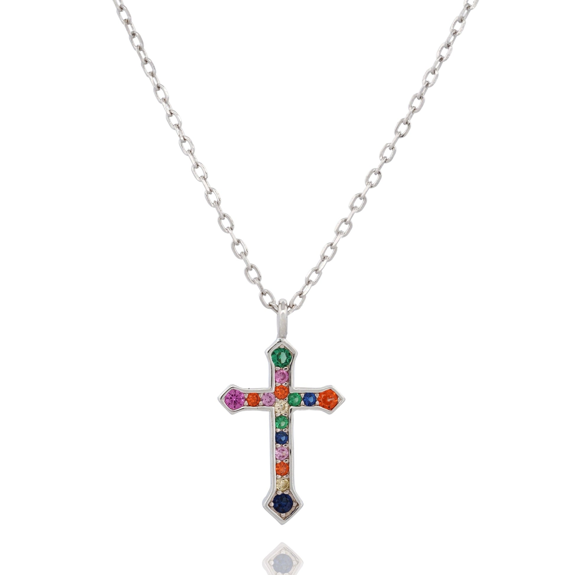 Silver Coloured Crystals Cross Necklace