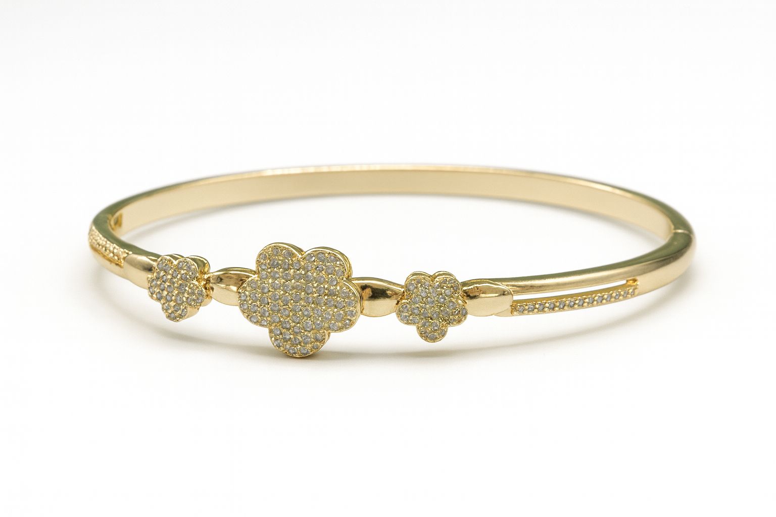 14ct Pavé Flower Gold Plated Bangle Bracelet