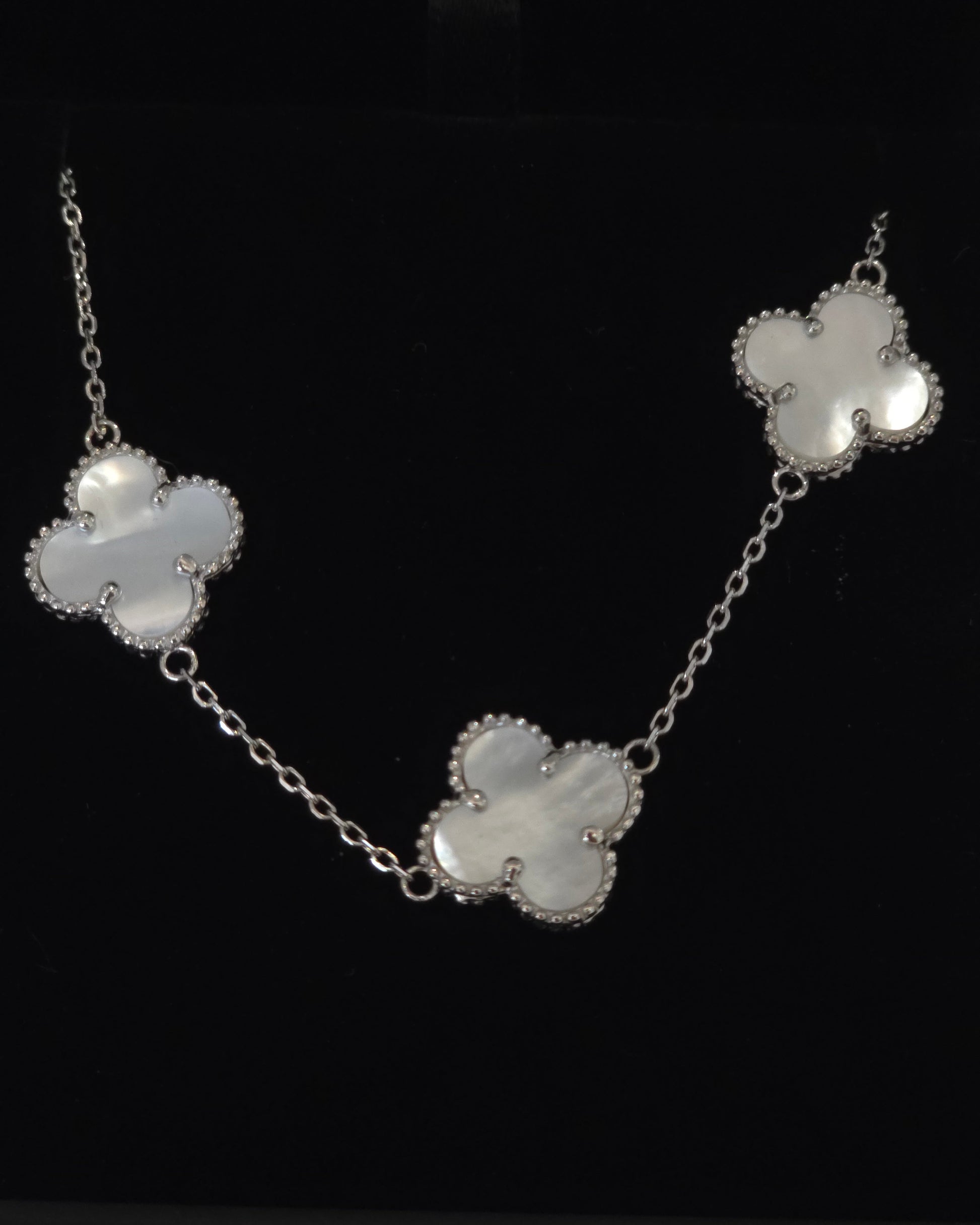 Sterling Silver 925 Mother of Pearl Clover Station Bracelet