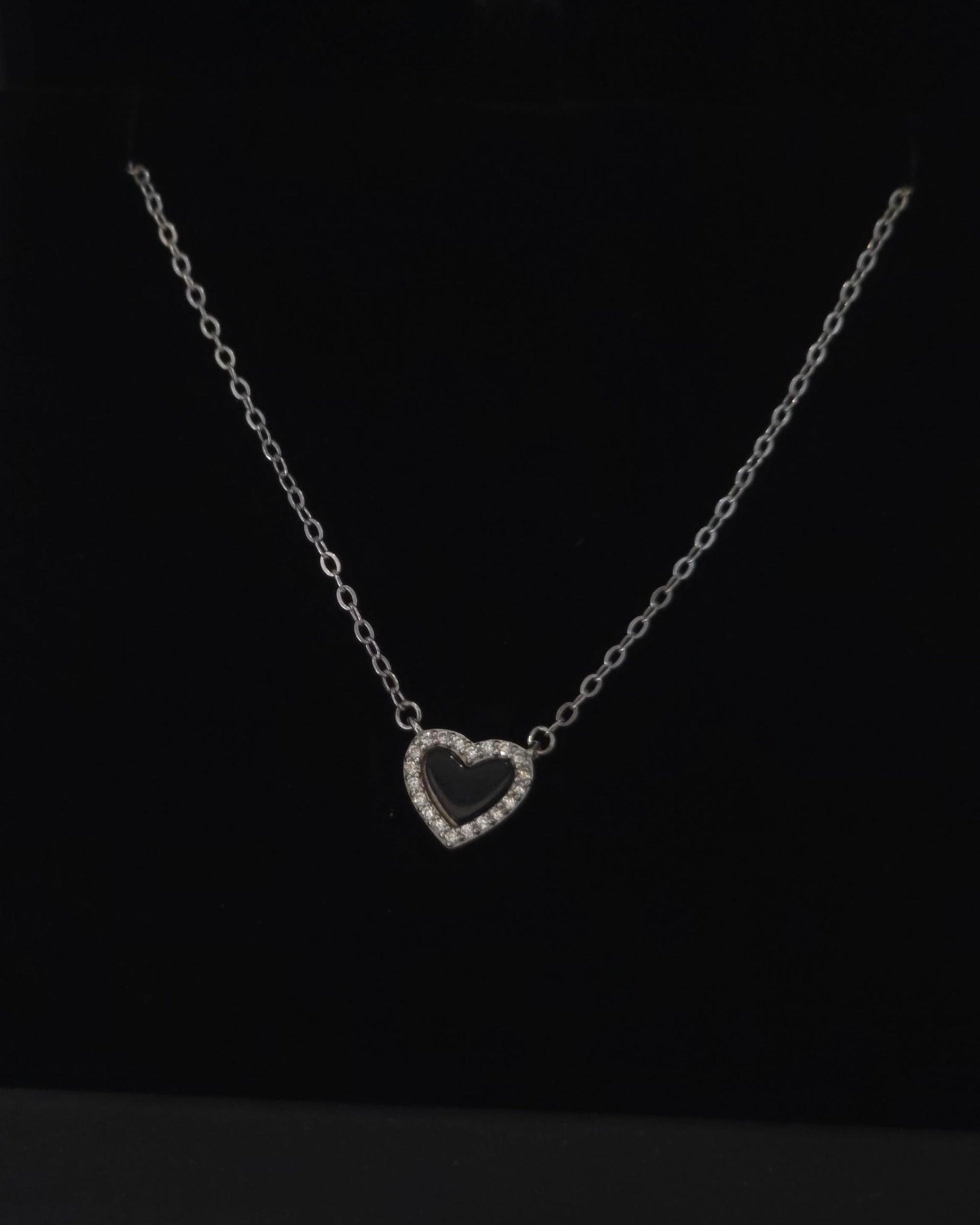 - Pendant Accent: Smooth, Polished Black Enamel Heart